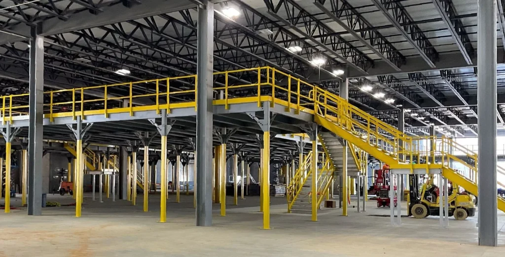 A structural mezzanine system can be used for storage, office space, production facilities, and other purposes. It is made to support heavy loads.